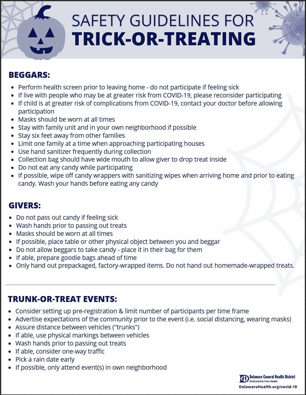 Let's keep Trick or Treat night fun and safe!!! All participants - whether those handing out candy or the children going to doors - are asked to practice social distancing and take extra precautions to prevent the spread of COVID-19. The Delaware General Health District has issued easy to follow Safety Guidelines for Trick-or-Treating to keep this night fun and, most importantly, safe for everyone!!